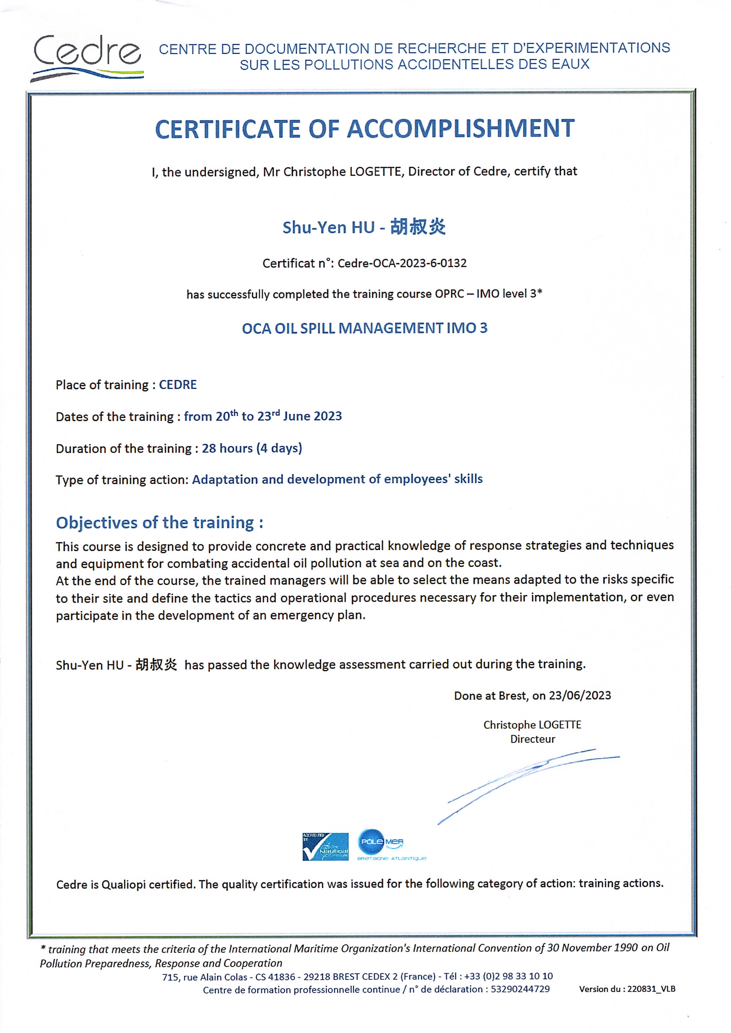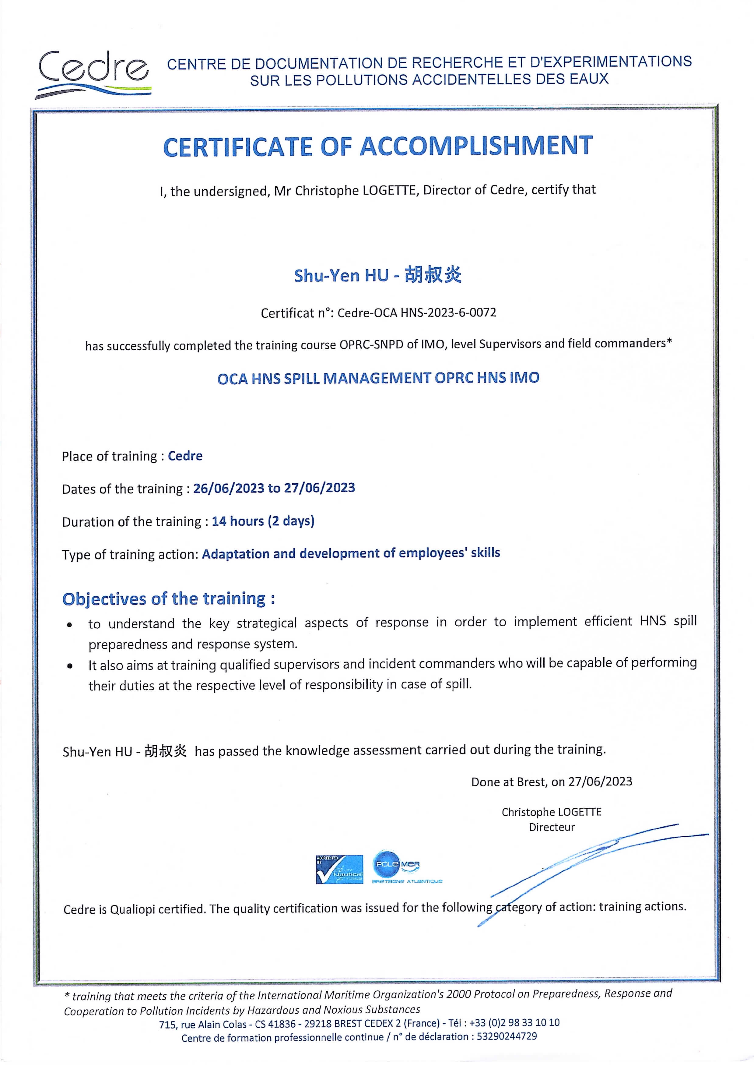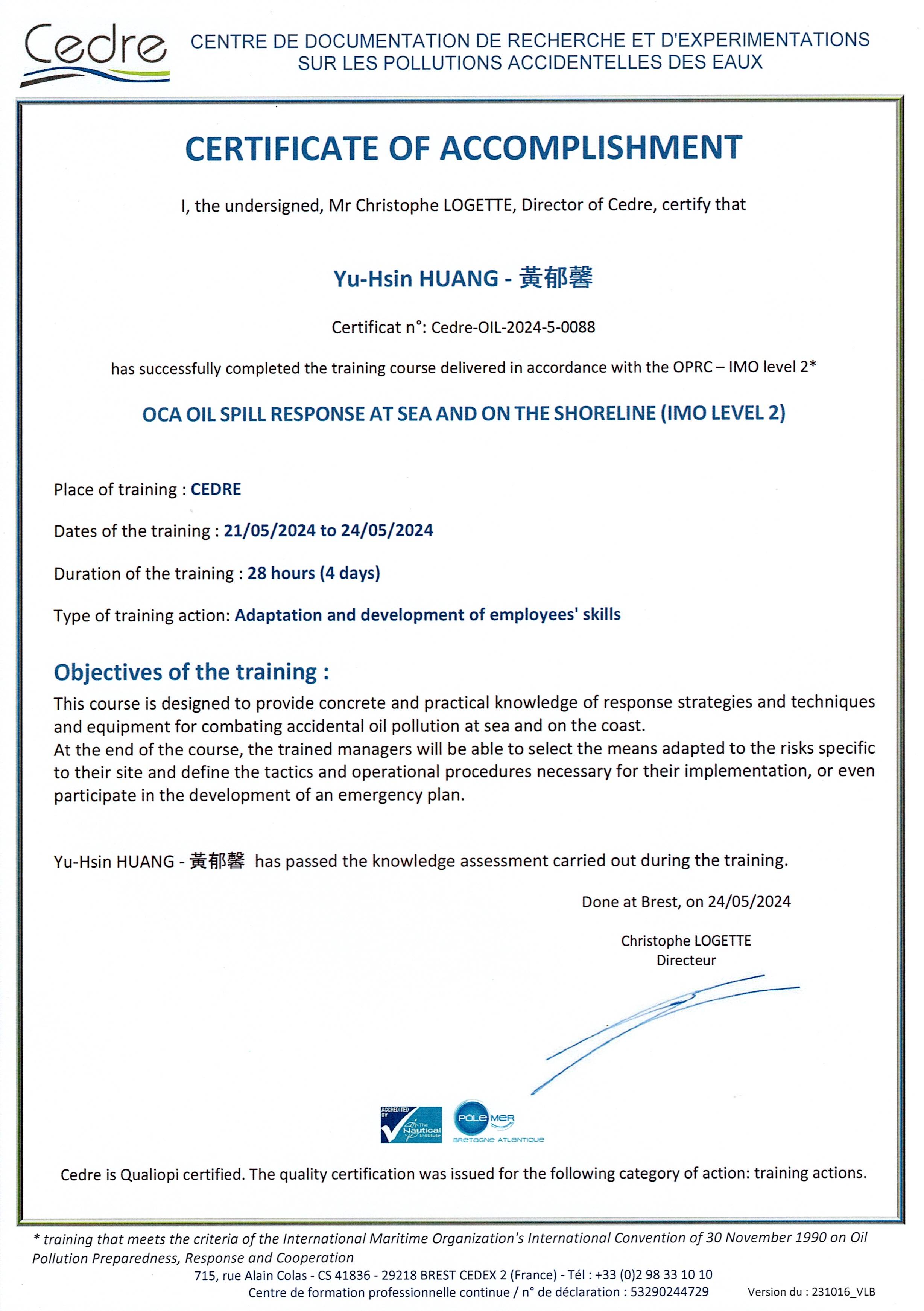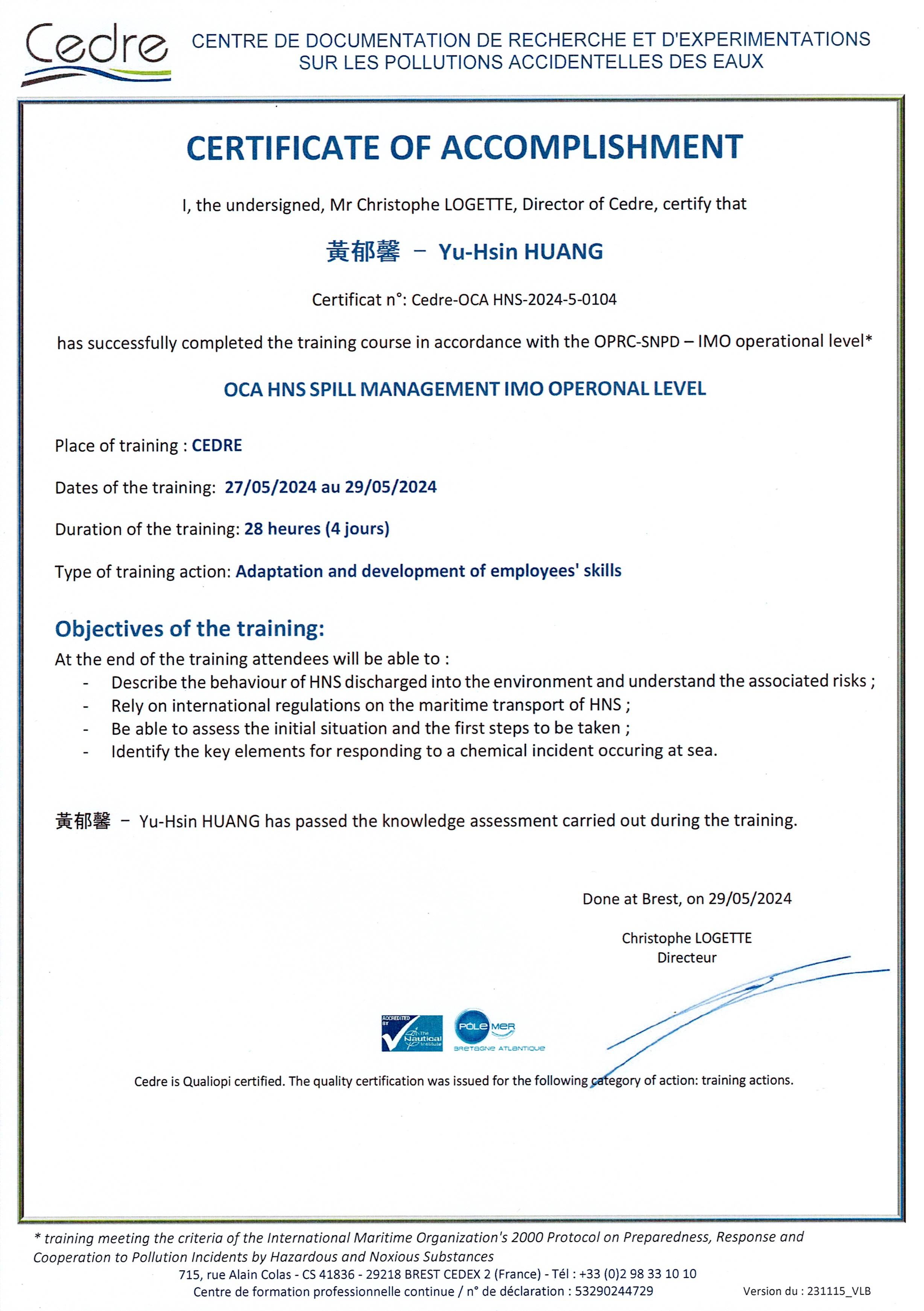 - 2022年海委會海保署「海巡隊海洋污染應變訓練(常年訓練)」訓練講師